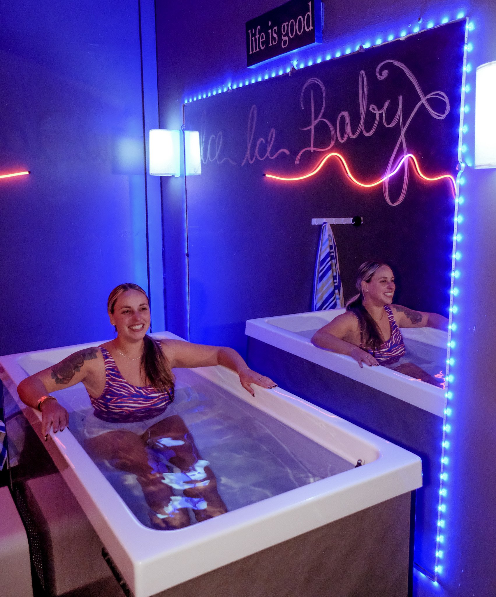 2. We require you to be in a bathing suit for the Cold Plunge. There is a bathroom to change in.